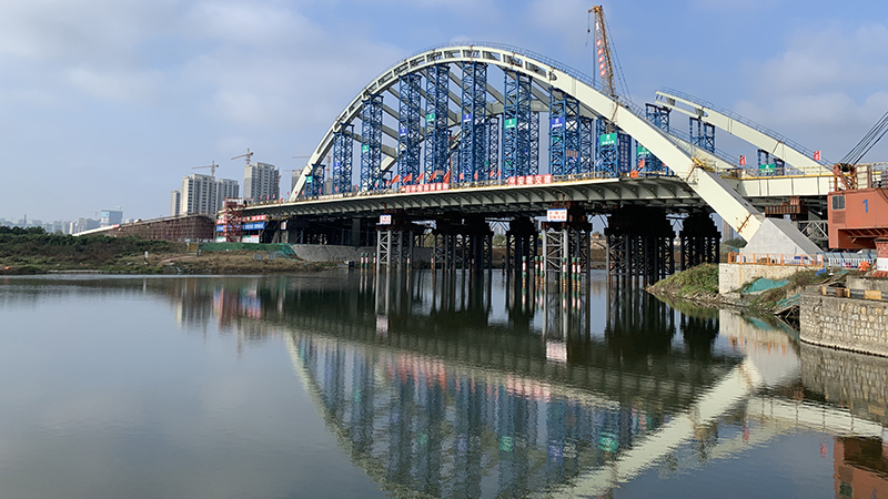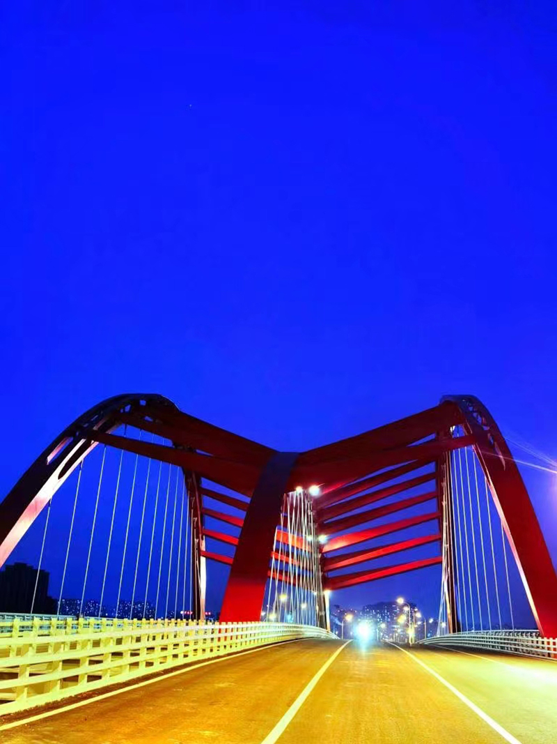 主橋技術(shù)難度大、橋型及受力結(jié)構(gòu)形式為當(dāng)下亞洲第二座(第一座在杭州),無(wú)論在技術(shù)公關(guān)還是在組織創(chuàng)新方面都給項(xiàng)目團(tuán)隊(duì)帶來(lái)巨大挑戰(zhàn),主橋的建成通車又一次展現(xiàn)了安徽交建在召之即來(lái),來(lái)之能戰(zhàn)的戰(zhàn)斗風(fēng)格,將在合肥市大建設(shè)史上留下濃墨重彩的一筆。該橋兼具城市景觀功能,橋型結(jié)構(gòu)新穎,外觀優(yōu)美,表面涂裝采用中國(guó)紅,鮮艷大氣,連接交通的同時(shí)也是合肥市南淝河上一道亮眼的風(fēng)景線。