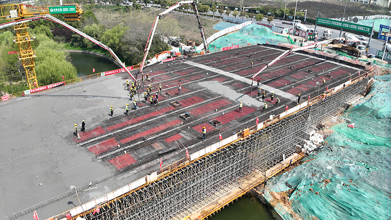 4月2日晚上8點08分,隨著最后一方混凝土的澆筑完成,由安徽省交通建設(shè)股份有限公司承建的廬陽區(qū)固鎮(zhèn)路(金桔路-大房郢路)道路施工項目上跨四里河及四里渠東路橋梁頂板現(xiàn)澆全面完成,標(biāo)志著該項目主體結(jié)構(gòu)施工結(jié)束,即將進(jìn)入橋面及附屬施工階段。