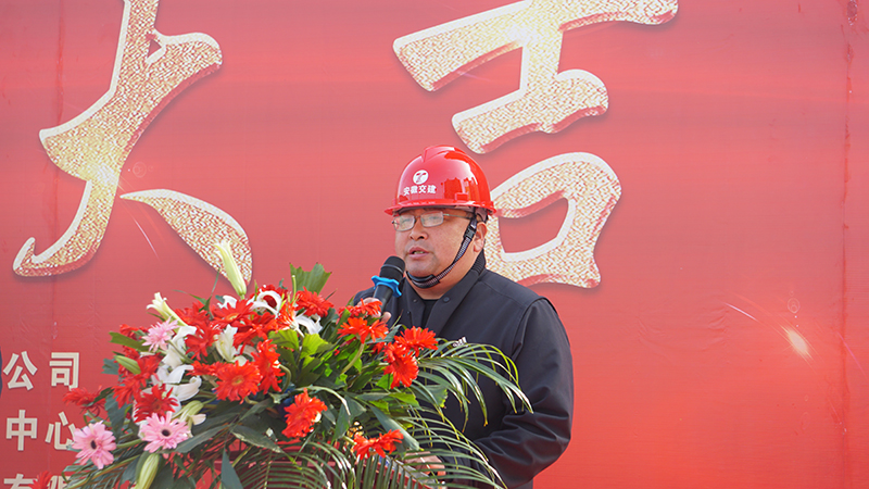 儀式上,鳳臺縣重點工程建設服務中心主任李曉輝在致辭中對安八二期項目13#樓封頂表示熱烈祝賀,向日夜奮戰(zhàn)在建設一線的全體建設者們致以崇高的敬意和真摯的問候,并希望在后續(xù)的建設中,全體人員一如既往強化安全管理,嚴把質(zhì)量關,加快施工進度,確保工程如期完成。