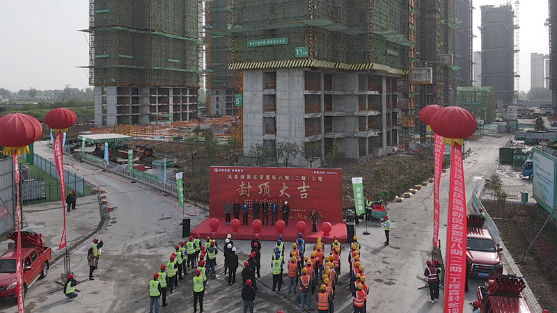 活動現(xiàn)場,彩旗飄揚,所有人臉上洋溢著喜悅的笑容。從一紙藍圖到一棟棟高樓,歷經(jīng)了無數(shù)日夜的精細打磨,鳳臺縣安八二期工程項目全員不負期盼和等待,率先迎來了13#樓封頂。