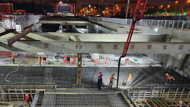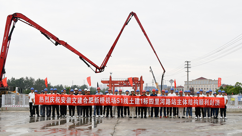 近日,由安徽省交通建設(shè)股份有限公司承建的合肥新橋機場S1線土建施工總承包1標(biāo)四里河路施工現(xiàn)場,伴隨最后一塊頂板的澆筑完成,標(biāo)志著四里河路車站主體結(jié)構(gòu)順利實現(xiàn)封頂。