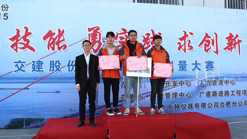 最后,交建股份副總裁吳小輝、技術(shù)開(kāi)發(fā)中心總經(jīng)理宣菲分別為獲得全站儀組、水準(zhǔn)儀組團(tuán)體第一名頒發(fā)證書(shū)和獎(jiǎng)金并表示祝賀。至此,交建股份第三屆施工測(cè)量技術(shù)培訓(xùn)暨施工測(cè)量大賽圓滿落幕。