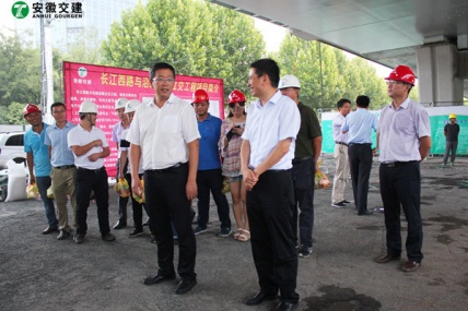 7月18日,安徽省交通控股集團(tuán)總經(jīng)理錢東升、建管處處長蘇新國、項(xiàng)目辦主任鄒正明等領(lǐng)導(dǎo)一行蒞臨安徽交建滁淮高速定長段路面一標(biāo)項(xiàng)目部進(jìn)行檢查指導(dǎo)。