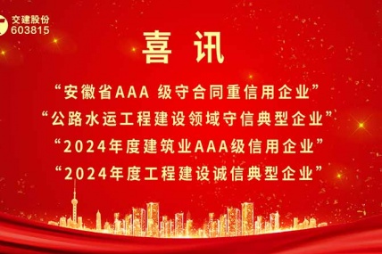 近日,安徽省交通建設(shè)股份有限公司憑借誠信經(jīng)營和良好的社會信譽(yù)連獲“安徽省AAA 級守合同重信用企業(yè)”、“2024年公路水運工程建設(shè)領(lǐng)域守信典型企業(yè)”、“2024...