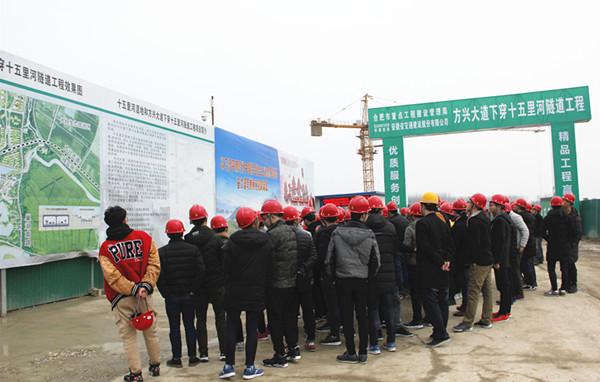 3月8日下午,十五里河濕地工程和方興大道下穿十五里河隧道工程項目(以下簡稱方興大道項目)迎來了安徽理工大學(xué)土木工程專業(yè)參觀團(tuán),近百名學(xué)子在項目駐地及施工現(xiàn)場進(jìn)行了系統(tǒng)的學(xué)習(xí)、交流。
