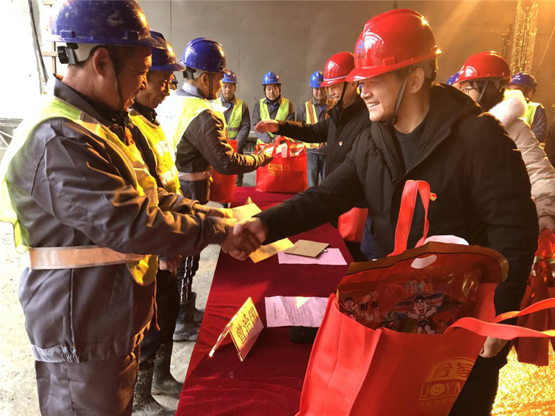 活動中,志愿者們忙碌的身影,匯成一道道亮麗的風景線。他們一邊向返鄉(xiāng)農(nóng)民工宣傳網(wǎng)上購票知識,一邊發(fā)放勞動法、公司法以及建設工程施工合同常見法律問題等普法宣傳材料,并提供現(xiàn)場志愿咨詢答疑服務,一同打掃工舍、貼春聯(lián),共迎新年……志愿者們熱情細致的服務得到了農(nóng)民工兄弟和周邊群眾的一致好評。此外,在活動現(xiàn)場為20多名生活困難農(nóng)民工提供返鄉(xiāng)購票愛心基金,并送上豐厚多樣的新春大禮包,為春節(jié)期間“匠人”順利返鄉(xiāng),貢獻了力量,傳遞了溫暖。同時,還為1名家庭特別困難的民工子女送去新年禮物,讓忙碌了一年的城市建設者深刻感受到城投公司對其留守子女、家人的真切關懷,以及被尊重、被認可的職業(yè)崇高感。