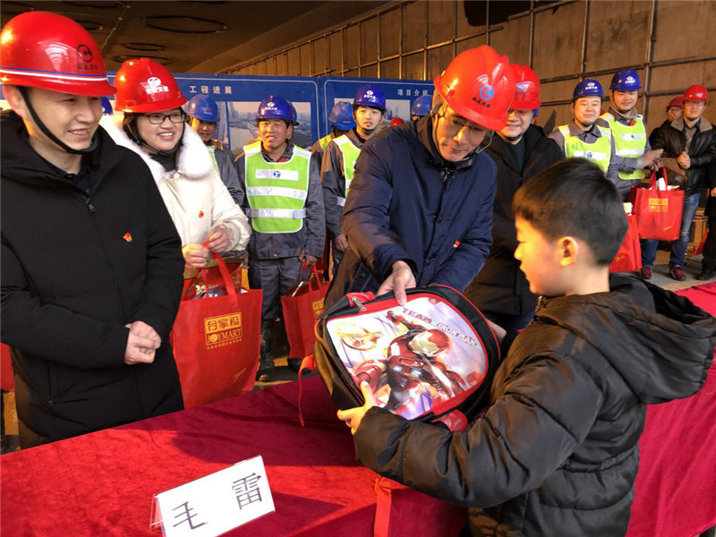 當天上午,盡管風雪交加,懷寧路項目全體成員、業(yè)主城投公司領導班子及廣大黨員志愿者依然堅持早早來到項目現(xiàn)場,戴上安全帽,搭好志愿服務臺,擺好桌椅,等候著返鄉(xiāng)農(nóng)民工的到來。