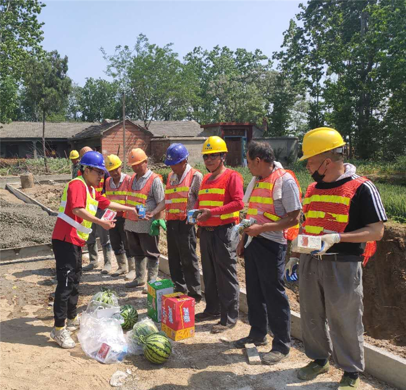 施工加速度的背后是汗水。在五一期間,界首市氣溫連續(xù)一周高達(dá)36℃,項(xiàng)目部完善高溫作業(yè)應(yīng)急處理預(yù)案,合理安排作息時(shí)間,減少了白天室外作業(yè)時(shí)間,披星戴月、節(jié)假無(wú)休的搶工模式也成了家常便飯。“苦是苦了點(diǎn),但也是鍛煉的好機(jī)會(huì),雖然任務(wù)重,但是大家戰(zhàn)斗在一起,共同為榮譽(yù)而戰(zhàn),多苦也是值得的?!表?xiàng)目部管理人員這樣說(shuō)道。為保障每一位工人的人身安全,項(xiàng)目部還積極向作業(yè)人員宣傳高溫期間防暑降溫基本常識(shí)和救援知識(shí),增強(qiáng)高溫天氣預(yù)防中暑的安全意識(shí)和急救能力,并為各工區(qū)施工人員發(fā)放防暑降溫物品。