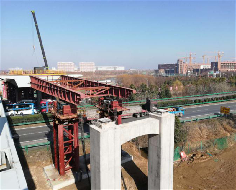 本項目于2019年4月底開工建設,目前上跨合六葉高速公路東西雙幅橋梁頂推、落梁已經(jīng)全部結(jié)束,整個頂推施工進展順利。
