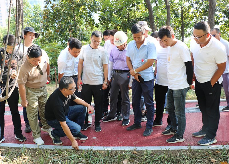 活動(dòng)期間,安徽交建2019經(jīng)開(kāi)慢行項(xiàng)目經(jīng)理吳金忠分享了施工管理的經(jīng)驗(yàn),針對(duì)慢行系統(tǒng)側(cè)石、透水混凝土、仿石材道板磚鋪裝、聚合物盲道以及瀝青混凝土面層施工工藝流程的控制,到邊到拐等細(xì)節(jié)處理方面與在場(chǎng)的專家進(jìn)行了深入的交流和探討。