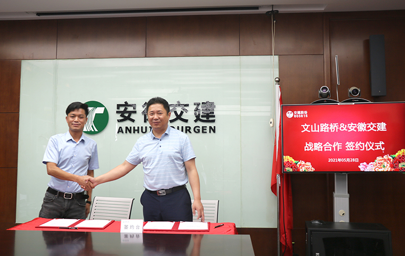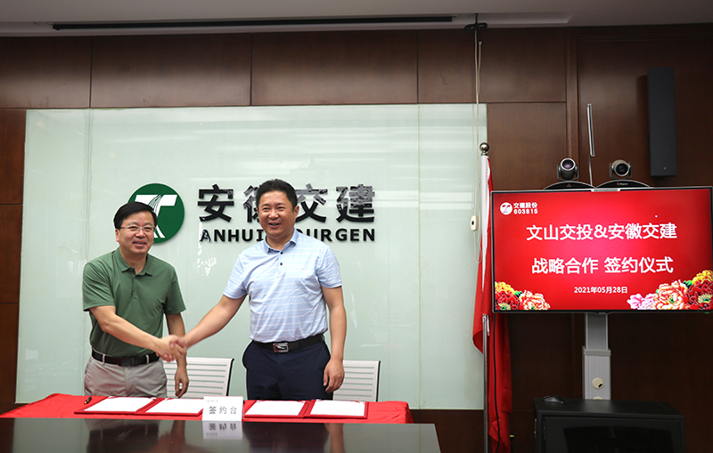 5月28日上午,安徽省交通建設股份有限公司與文山交通投資建設股份有限公司、文山路橋有限責任公司簽署了戰(zhàn)略合作協(xié)議。文山交投集團黨總支副書記、副總經(jīng)理肖元靜,文山路橋公司董事長羅傳忠,交建股份黨委書記、董事長胡先寬等出席了簽約儀式。