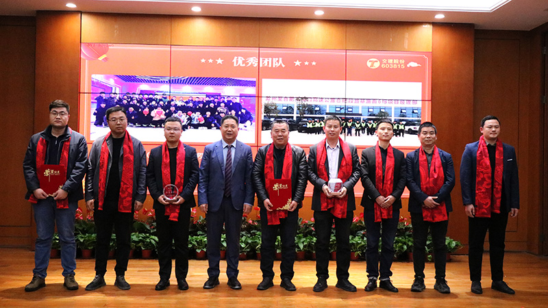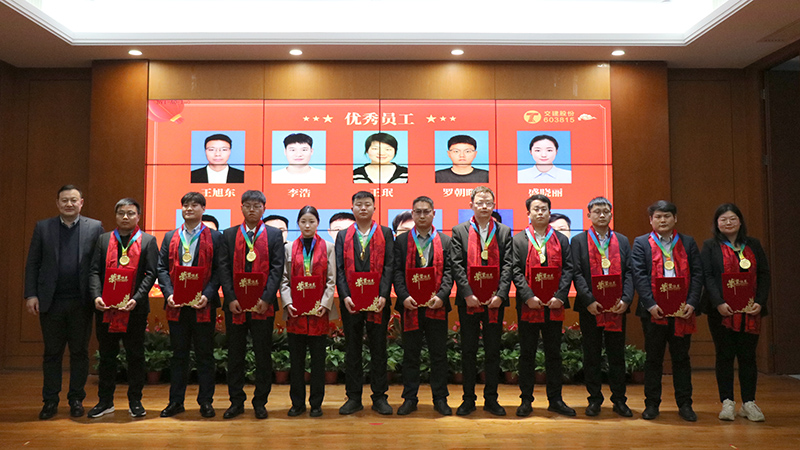 2023年公司全員凝心聚力,臨難不卻,取得了較為不易的成績,也涌現(xiàn)出了一批敬業(yè)篤行、奮輯勇進(jìn)的先進(jìn)榜樣。公司董事會秘書曹振明宣讀了2023年度公司優(yōu)秀表彰文件,隨后舉行了隆重的頒獎儀式,為受表彰的個人和集體頒發(fā)獎杯、證書及獎金。大會號召公司全員要以先進(jìn)為榜樣,心系發(fā)展,愛崗敬業(yè),同心共贏,再創(chuàng)佳績!